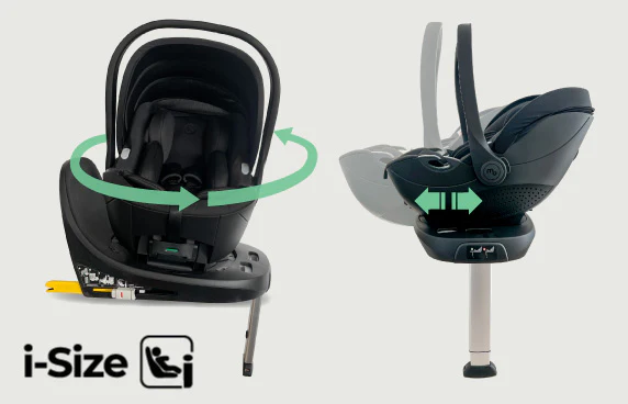 • Rotating i-Size infant carrier & adapters included